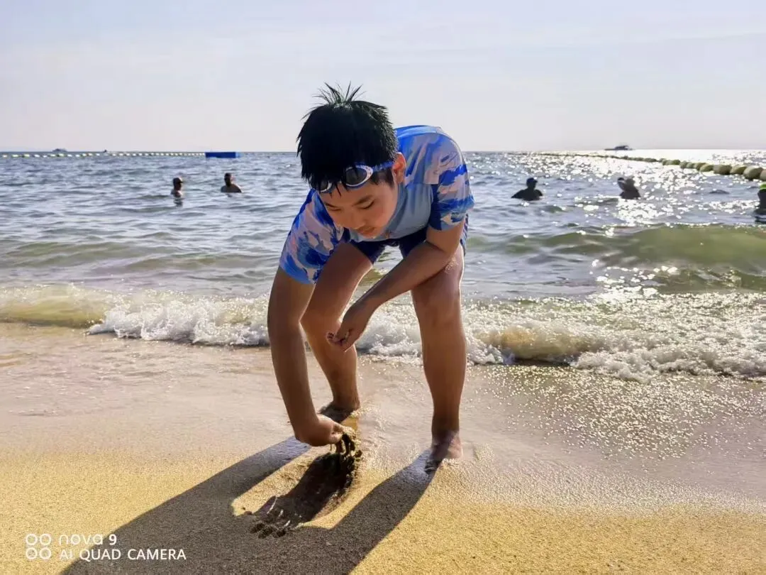 5号,我们到了海边,有很多小水母,我们卖了一套玩沙子的工具,用漏网和水桶抓水母,我们还找到了很多活贝壳,这一天和平静。