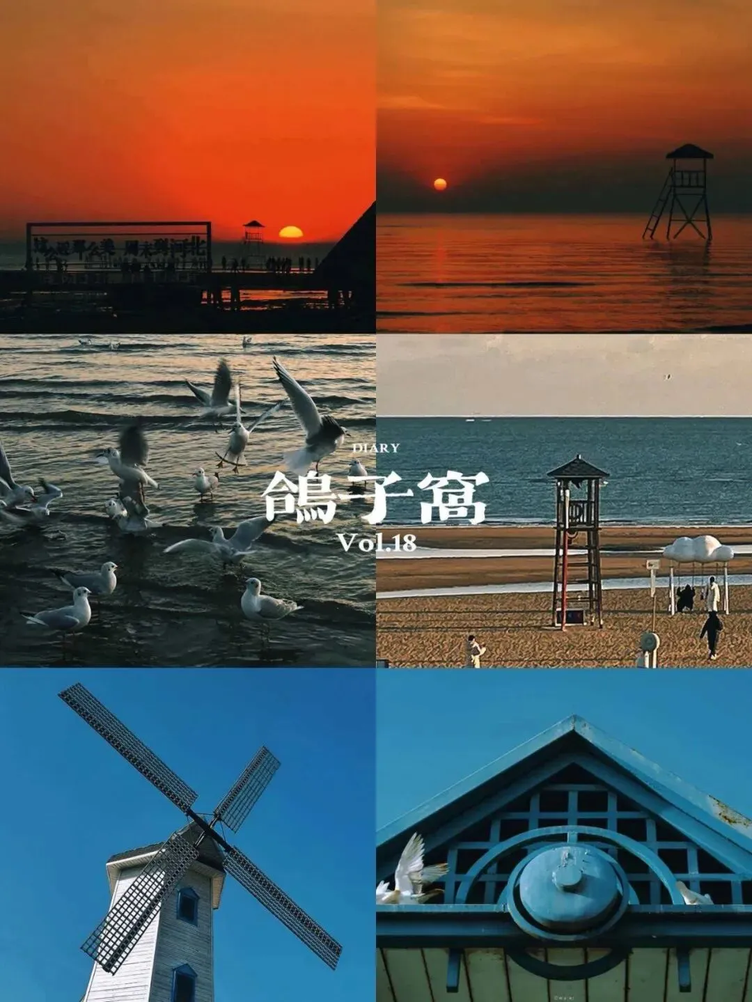 📍 鸽子窝(必打卡✅门票35r,2-3小时):北戴河四大景区,可二刷日出;按路线逛不绕路:鹰角亭→伟人观海→鹰角岩→望海长廊等,鹰角亭拍全景最佳;附近野生动物园、碧螺塔可顺路逛。 📍 海天一色(免费,17:30后,日落首选):夕阳洒海,海天一色超温柔,坐礁石拍日落大片,安静出片,适合放空。