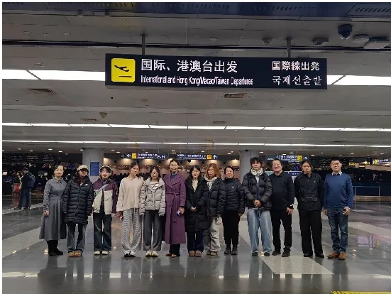 学院党委书记王静、副书记张利东及项目总协调人旅游管理系副系主任刘志华、旅游西班牙语专业负责人冀冉赴机场为师生送行