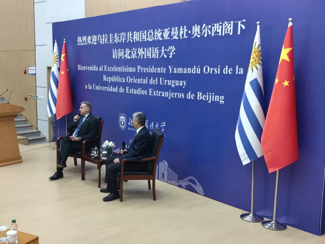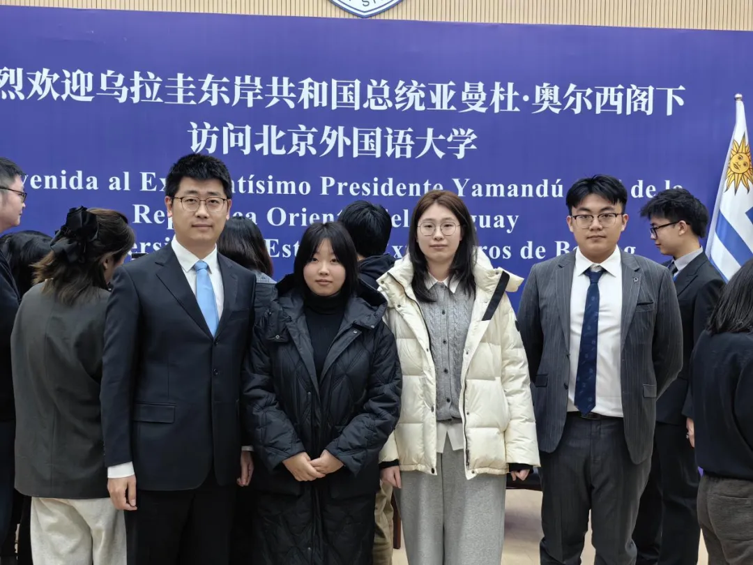 2月4日,学院师生代表应北京外国语大学西葡语学院的邀请,参加了乌拉圭总统访华期间的高规格外事交流活动。活动中,学院学生以扎实的语言功底与良好的跨文化沟通能力踊跃提问,与乌拉圭总统进行交流互动,展现了联大学子的专业素养,获得各方高度评价。奥尔西总统在讲话中也特别阐述了语言学习的深远意义,鼓励同学们通过他者的视角理解世界,感悟多元的历史与文化。通过参与此次高规格外事实践,学生们进一步开阔了国际视野,增强了服务国家对外交流事业的使命感。