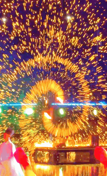 星飞电散,火树银花开。达人村大戏里的非遗打铁花让每一个人都震撼!