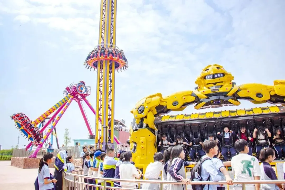 360度星际战警疯狂体验ing!跳楼机的失重感让你尖叫连连!大摆锤的快乐刺激更无法想象!