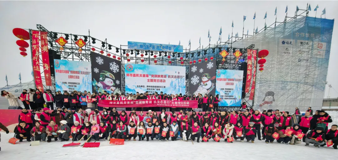 2月6日,师市党委直属机关工委在青格达湖景区举办首届“党旗映青湖 机关志愿行”主题党日活动。来自师市直机关114个基层党组织的近300名党员干部、“三支一扶”人员和西部计划志愿者参与其中,通过志愿服务助力景区环境提升,并以团建活动凝聚团队合力。