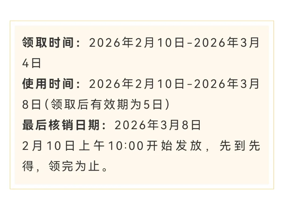为抢抓消费旺季,惠民利企,释放消费潜力,为全国游客营造良好的节日文旅消费环境,河南省将于2026年2月10日—3月8日面向全国游客发放2026年“乐享河南”新春文旅、住宿类消费券。