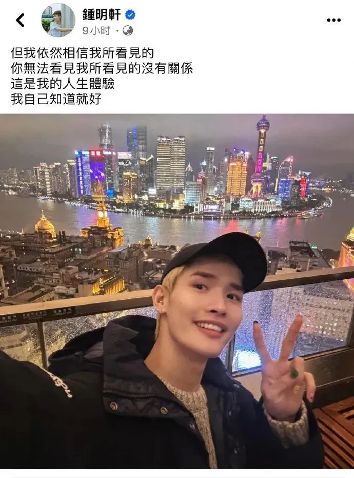 2025年7月,钟明轩发布贵州铜仁旅行视频,强调用"肉眼感受真实",称大陆乡村的淳朴是"中华文化真正的底气”。