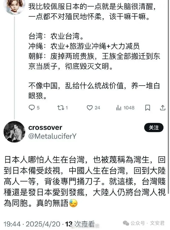 从这个角度来讲,日本对台湾的50年殖民统治和洗脑术,是极度成功的。