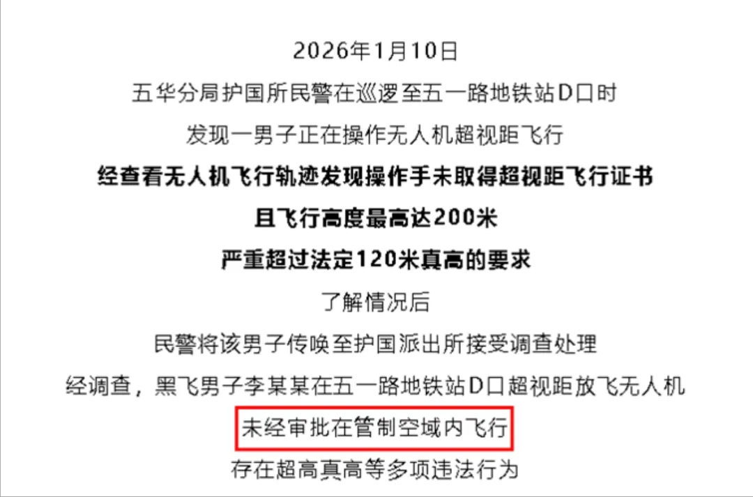 案例三:⚠️昆明五华查处黑飞!男子在五一路地铁站违规飞行,超高+无资质被传唤调查