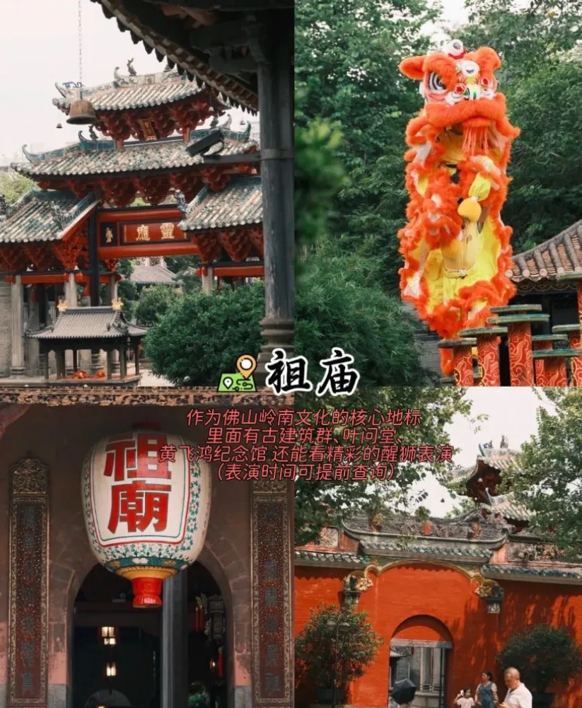 岭南文化的灵魂所在!古建筑群飞檐翘角,庄重恢弘,叶问堂与黄飞鸿纪念馆诉说着武林传奇。别错过精彩的醒狮表演,鼓点激昂中尽显非遗魅力。