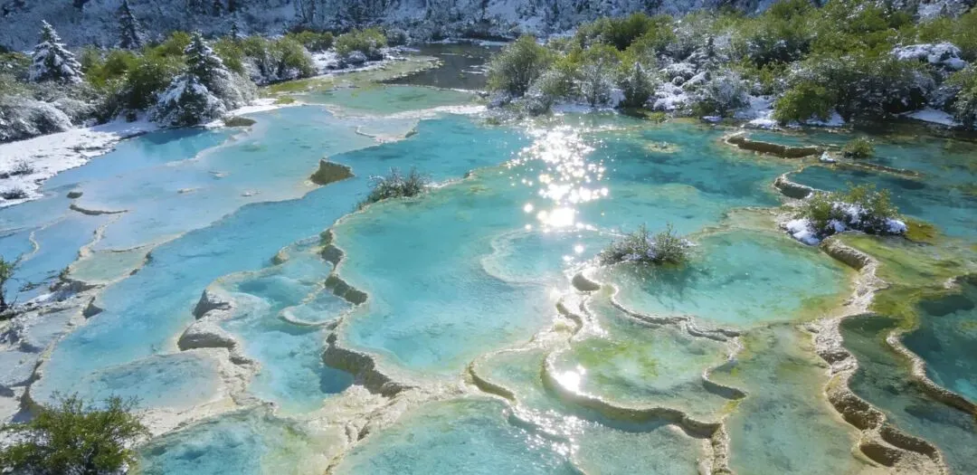 ◦ “童话世界”,五彩池水、瀑布群,水色随季节变换