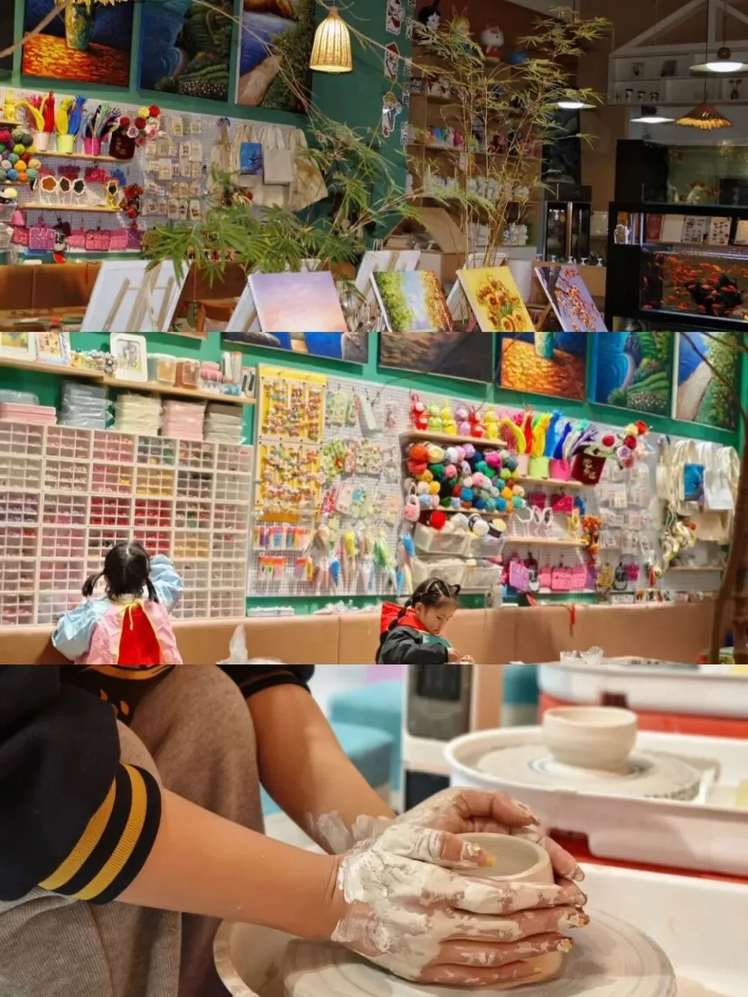 龙南大型综合手作店✨ 一楼可体验diy银饰、手拉陶坯、拼豆等,二楼可品咖啡看书,是个遛娃好去处。