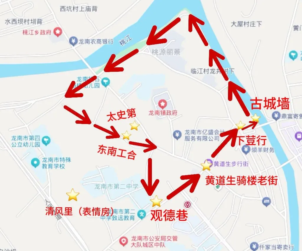 路线2:黄道生骑楼老街 ➡️ 下荳行 ➡️ 古城墙 ➡️ 太史第 ➡️ 东南工合 ➡️ 观德巷