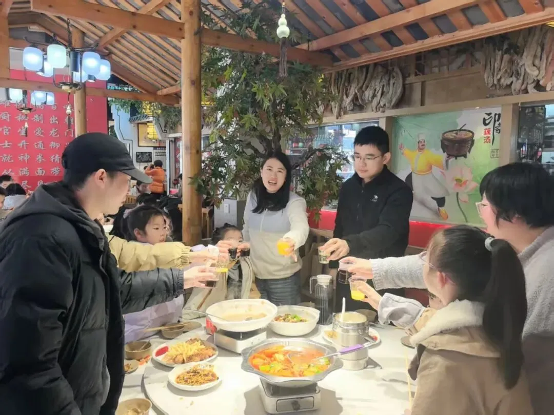 首站抵达甘露山藕汤印象,一桌桌热气腾腾的湖北特色藕汤宴早已备好,鲜香浓郁的汤品、地道风味的菜肴,瞬间驱散了冬日的微寒,也温暖了每一位奋斗者的心。
