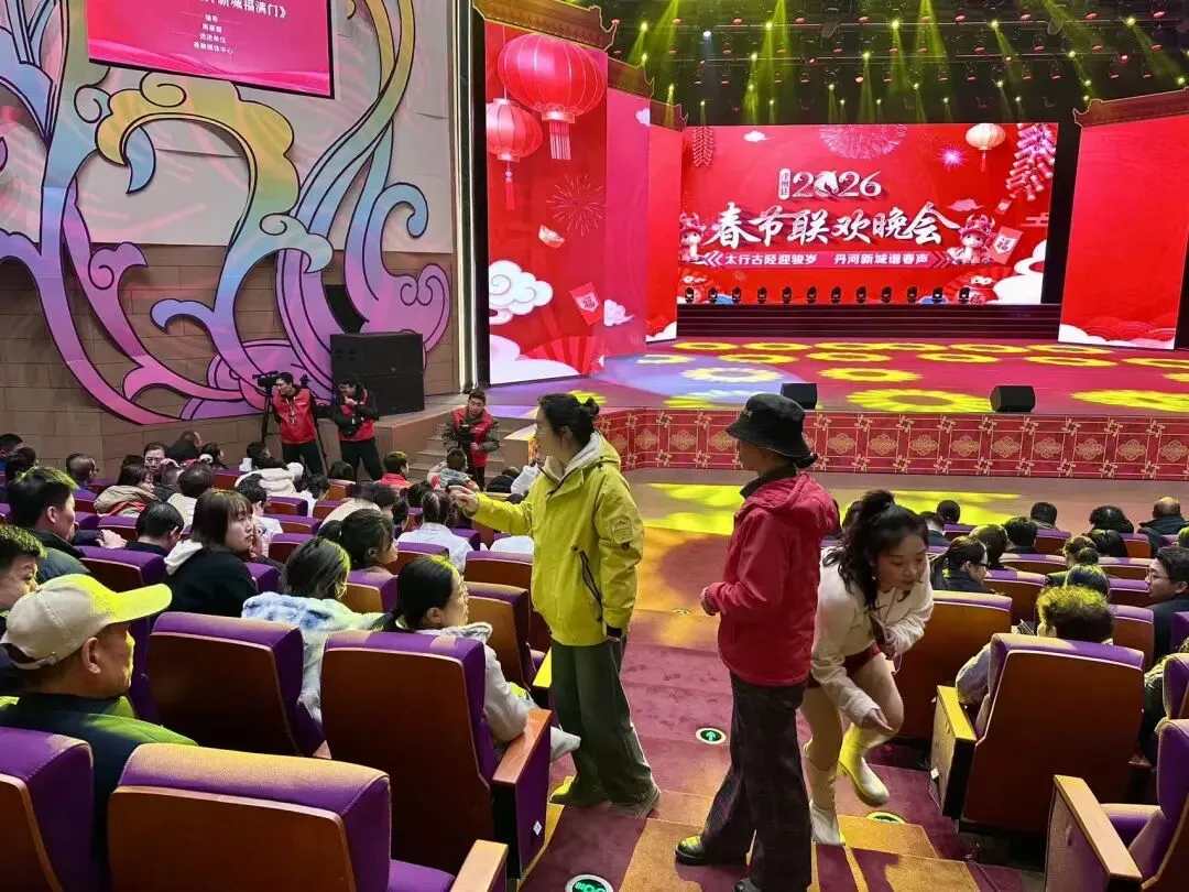 本届春晚由泽州县委、县政府主办,紧紧围绕“全县一家亲”核心主题,通过歌舞、相声、非遗、上党梆子、情景剧等丰富多彩的艺术形式,全景式展现了泽州近年来的发展成果、深厚人文底蕴与温暖民生情怀。珏山景区深度参与晚会筹备与节目呈现,将景区雄奇的自然风貌、独特的星宿文化、传统的祈福民俗等核心元素,巧妙融入舞台视觉设计与节目叙事之中。在《古韵泽州》《二十八星宿》等节目中,以诗意化、意象化的艺术表达,生动勾勒出珏山的秀美景致与千年文脉,让广大观众在沉浸式的视听享受中,真切感受泽州山水之美与文化之韵。 晚会筹备与举办期间,珏山景区高度重视、精心组织,全体员工分工明确、各司其职,全方位、高标准参与后勤保障各项工作。票务服务严谨高效,细心核对信息、有序检票入场,全力保障观众快速便捷通行;现场引导热情周到,从入口指引到座位引导,用真诚微笑传递温暖,让每一位观众都能舒心入场、安心观演;咨询答疑耐心专业,实时回应观众疑问,细致解决观众需求;暖心服务贴心入微,免费提供热水等便民物资,为现场观众与工作人员送去冬日里的融融暖意;帮扶救助及时到位,主动关心帮助老人、小孩等特殊群体,尽显细致入微的人文关怀。与此同时,景区工作人员全力配合做好场内事务、环境保洁、秩序维护等工作,确保晚会现场流程顺畅、环境整洁、秩序井然。