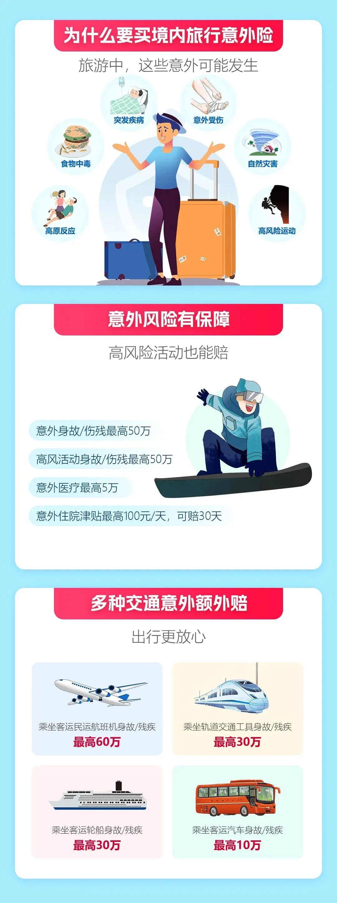 计划三/四:适合长途旅行、前往高原或计划参与高风险运动,需要更高、更全面的保障。